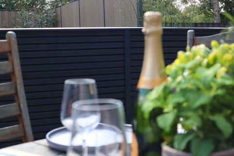 DuraPost® aluminium panels come in modern colour options such as Black, Anthracite Grey and more. You can choose between privacy panels for full screening or screen panels with slim horizontal lines for a contemporary look.